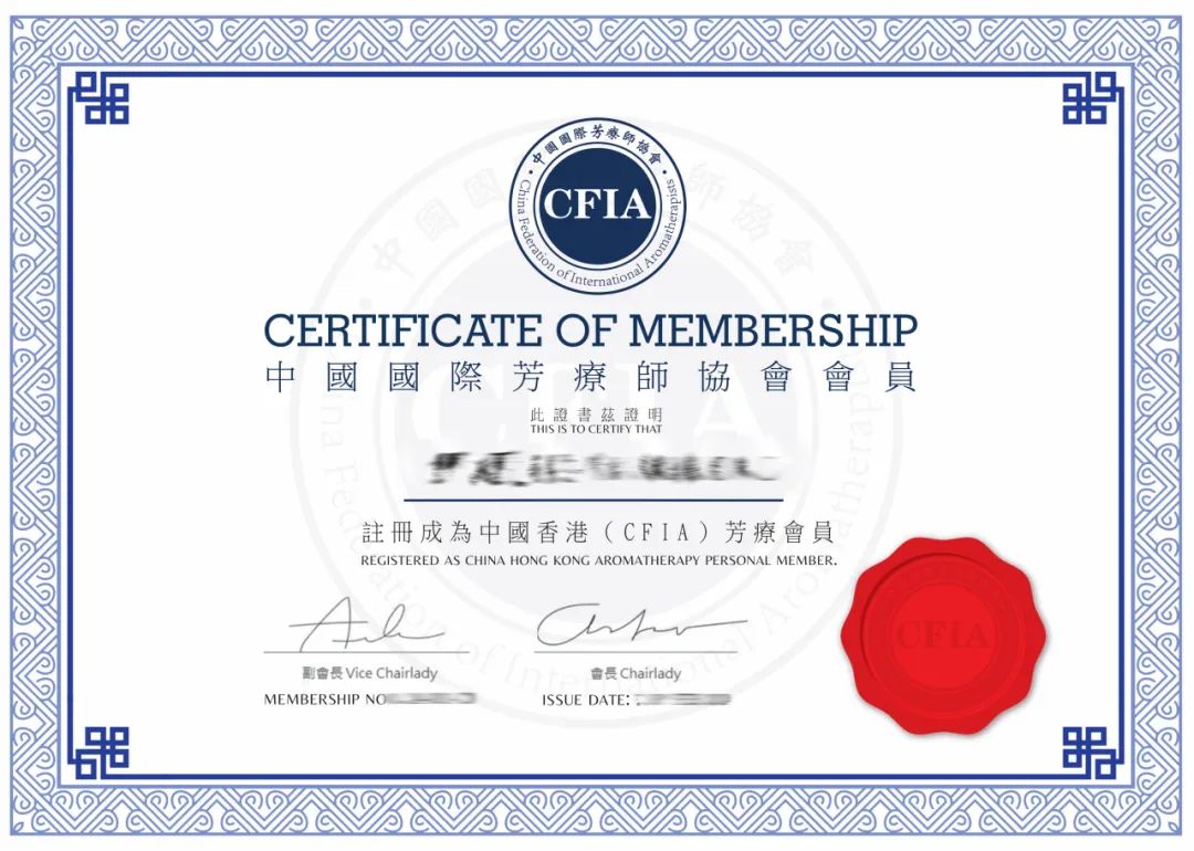 高级芳疗师会员执业资格证书